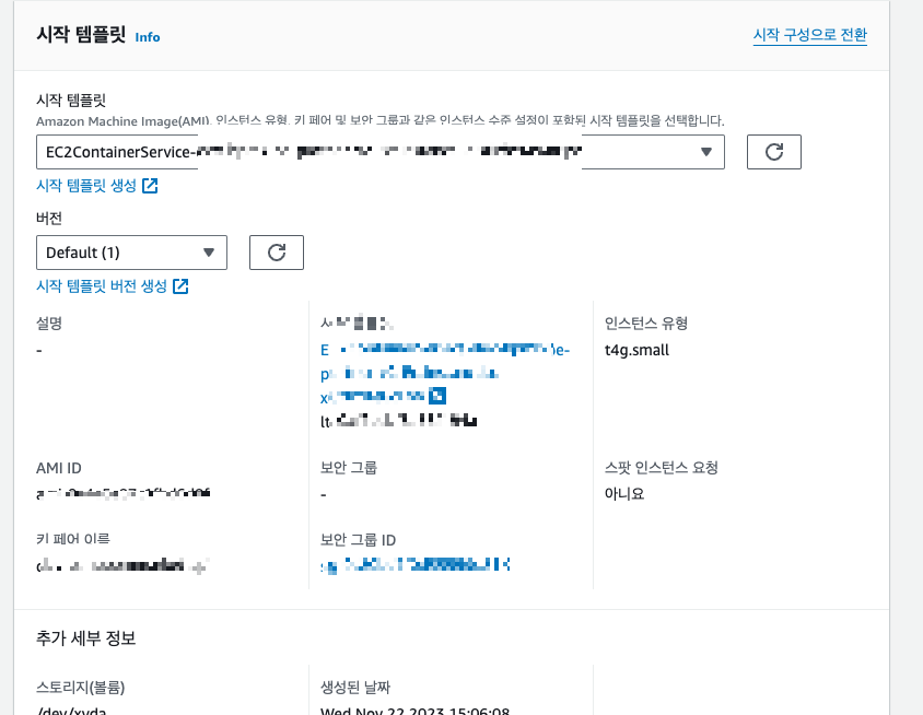 5. AMI, 인스턴스 유형.. emdemd 선택하여 시작 템플릿 버전 생성