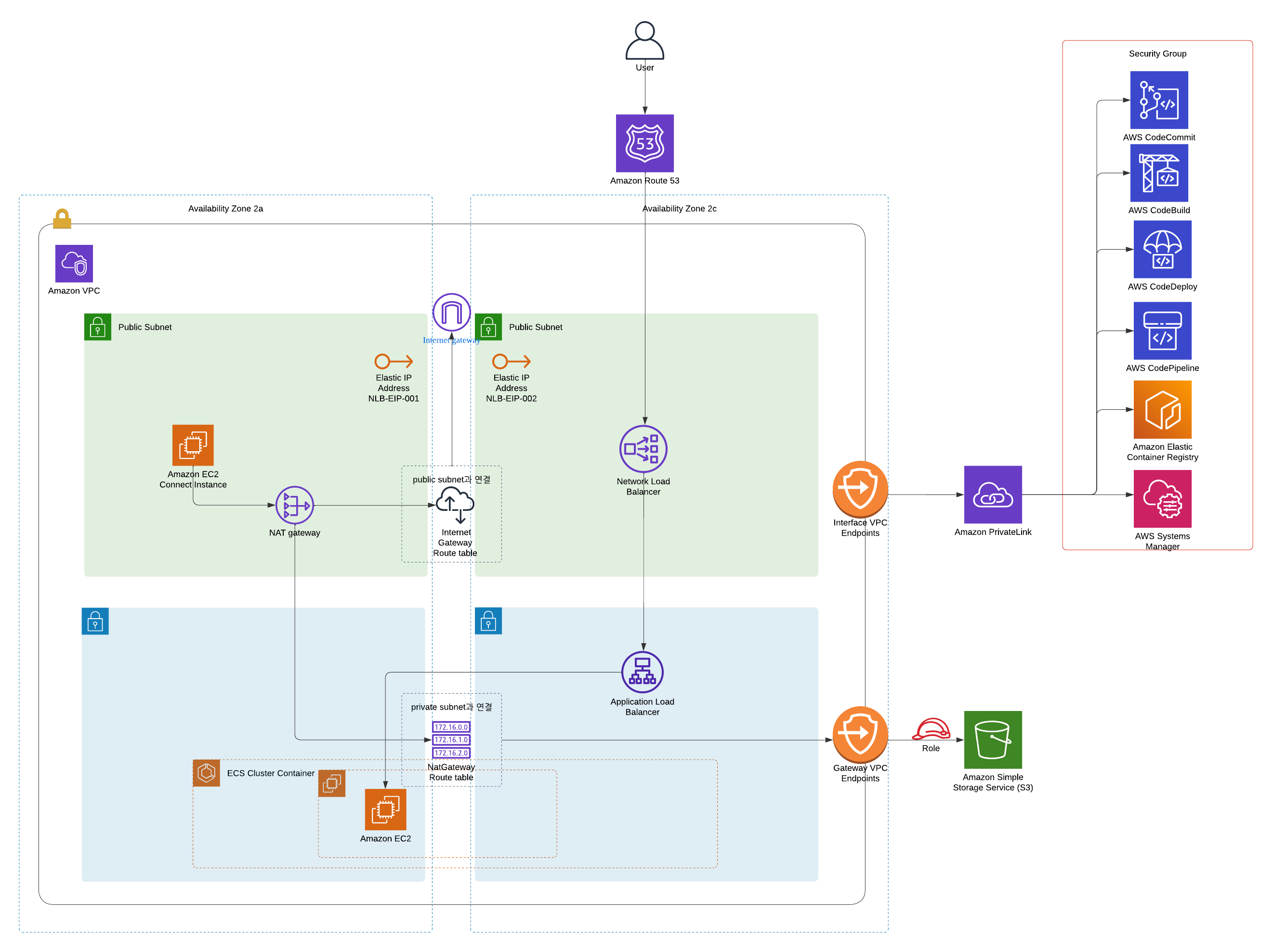 NAT Gateway의 비용문제로 NLB 를 사용하는 구조로 변경하였습니당.