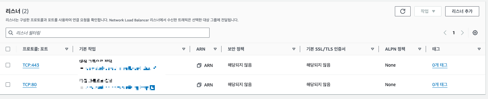 NLB의 대상그룹 대상은 ALB 구용~ 타겟 그룹은 각각 TCP:443, TCP:80 두가지가 필요해욥