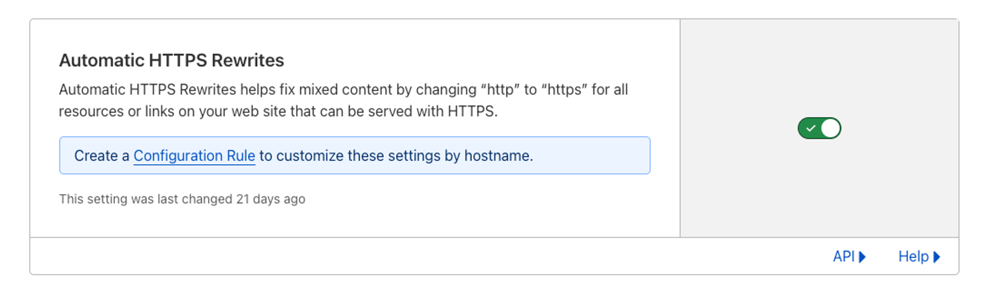 Automatic HTTPS Rewrites prevents end users from seeing “mixed content” errors by rewriting URLs from http to https for resources or links on your web …