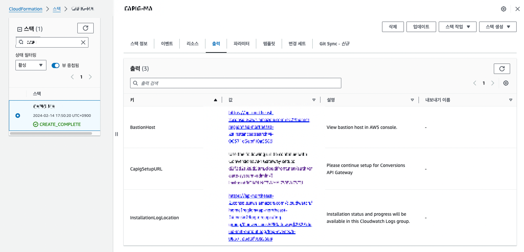 2. CloudFormation Stack 으로 생성된 CAPIG-MA 리소스 결과 확인
