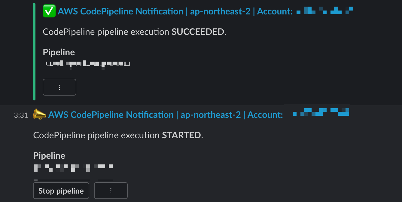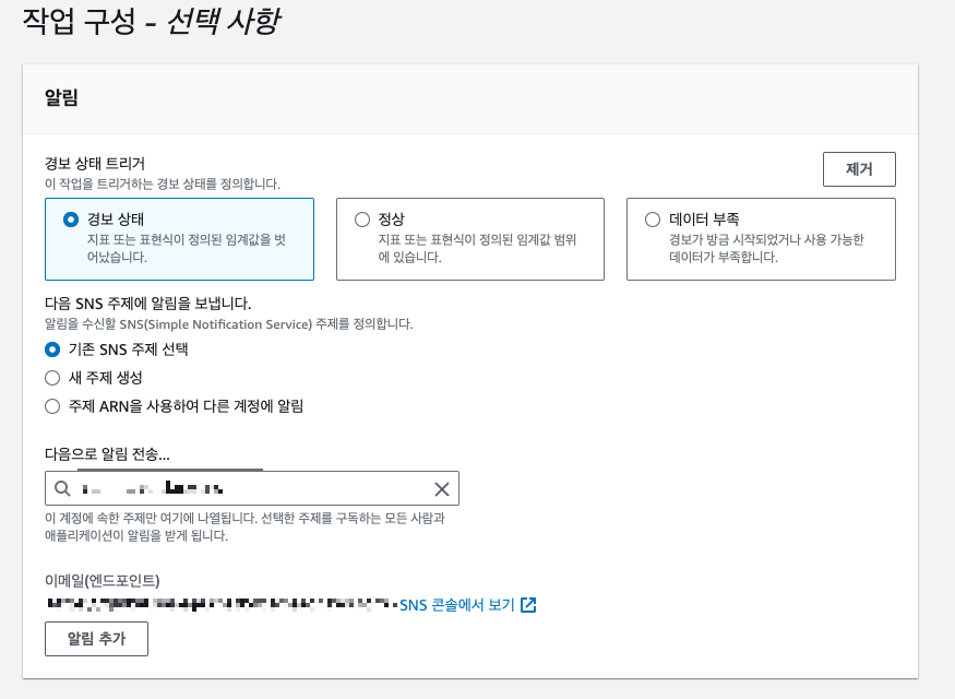 Codepipeline 과 CloudWatch 경보에 대한 알림을 동일한 SNS 를 사용한 경우 둘 중 하나의 알림이 정상적으로 전송되지 않는 경우가 발생하였다