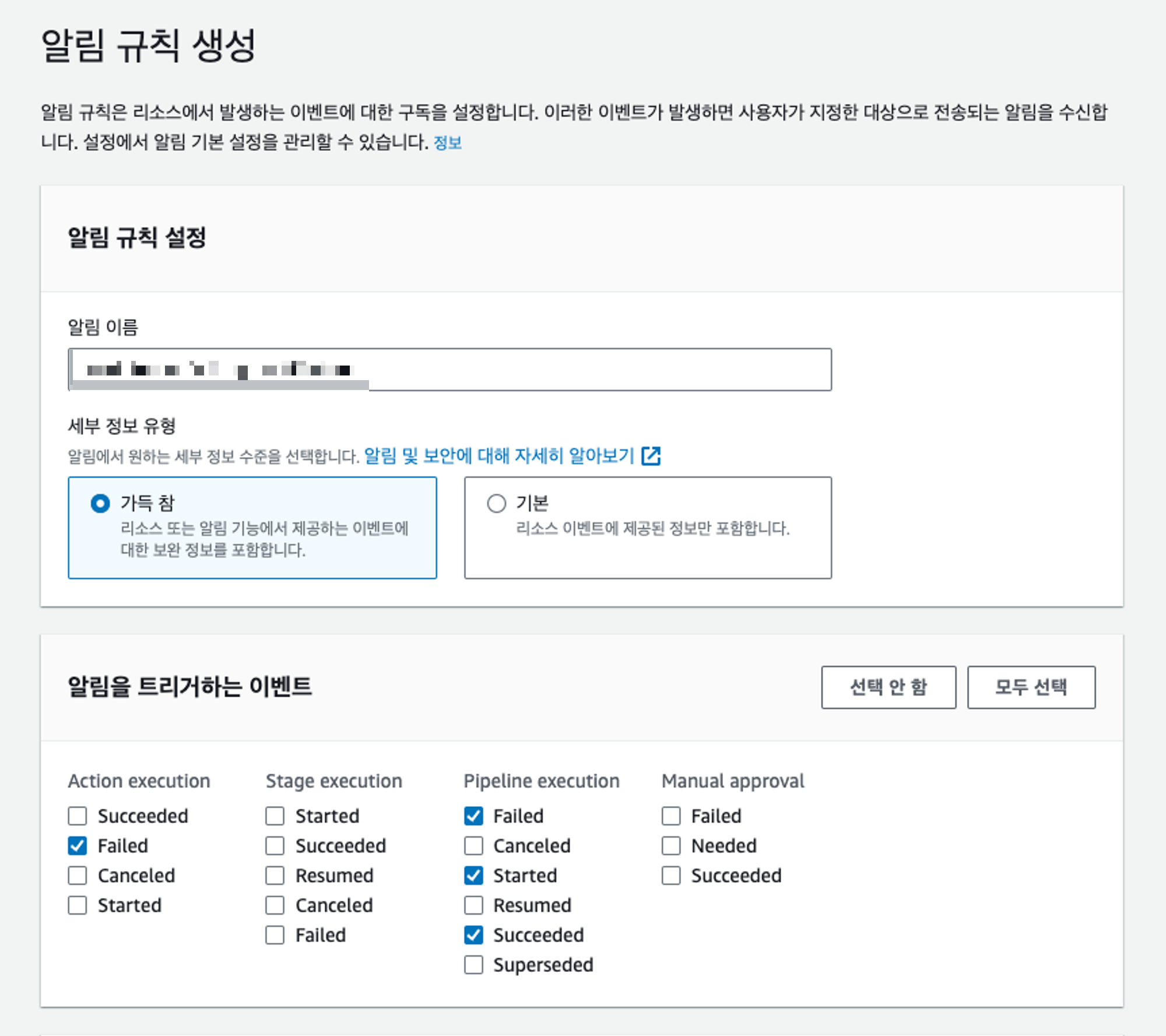 1. codepipeline 선택 - 알림 - 알림 규칙 생성